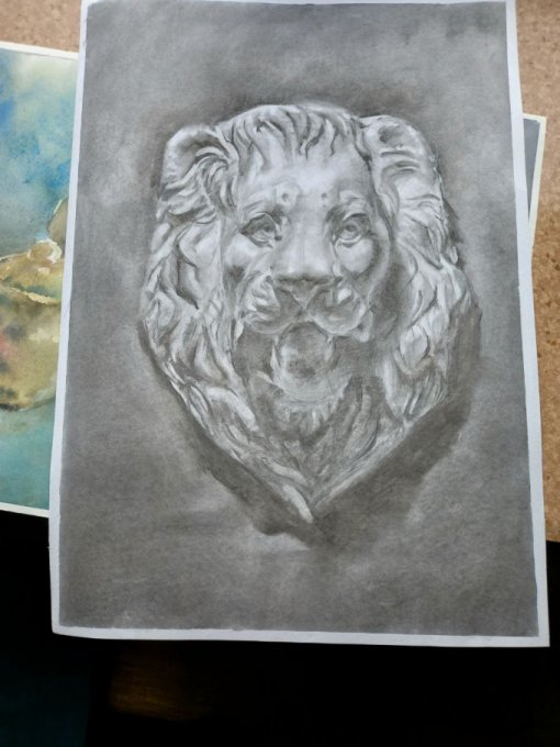 Голова льва. Смешанная техника. Уголь-карандаш