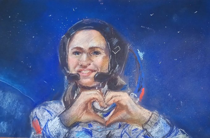 Рисует Ярослава. Работа на конкурс ко Дню космонавтики. Белорусский космонавт. Марина Василевская. Летала с 25 марта по 6 апреля. Техника Пастель