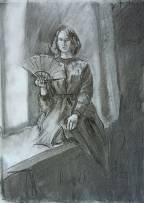 Рисует Ярослава. Девушка с веером. Уголь