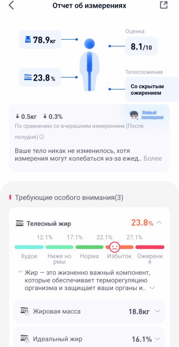 идеальный вес. Индекс массы тела в норме. Но процент жира пока