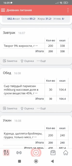 | Итого за день | 2516 | 1352 | 56 | 54 | 160 |