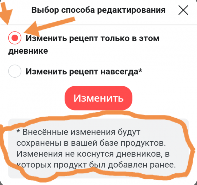 программа всё же изменила мой КБЖУ за 26 июля по отредактированному