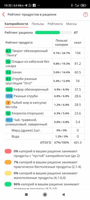 Здесь некоторые продукты МЗР не видит, как полезные, - надо их в базу самой забивать. Или не грузиться по этому поводу 👍😉