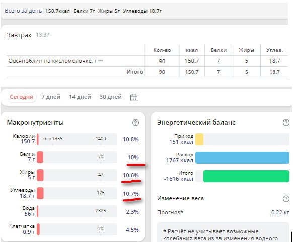 | Итого за день | 1850 | 1140 | 70 | 52 | 91 |