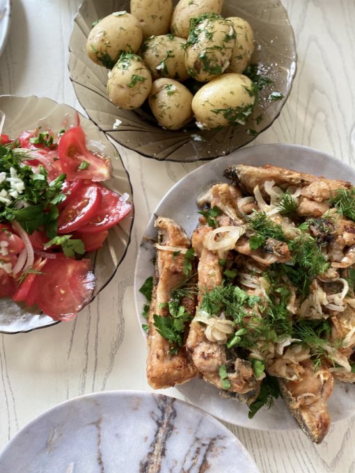 Доброго времени суток МЗРнички! У нас прекрасные деньки, солнечно и тепло, вчера блюдо дня- это зеркальный карп, сразу предполагался перебор по Ж, но вечером вдруг захотелось ещё и печени трески….совсем крохотульку, картофель молодой в мундирах с чесноком и зеленью, суп из белых грибов и салат из розовых помидоров. Клубника у нас уже по 180 рублей, на каждом углу продают. Кто-то недавно спрашивал про наш южный фрукт мушмулу как он выглядит, сделала специально фоточку рядом с грейпфрутом чтоб смогли оценить цвет и размер. На фото я и наша средняя дочь Злата, гуляли вдоль реки Белой, сегодня уезжаем в Ростов к младшей дочурке. Всем мира, добра, заветных цифр на весах и конечно же любви🥰
