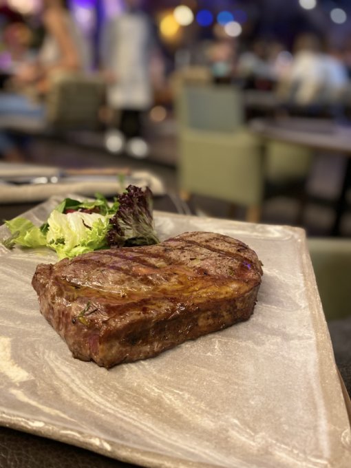 | Бизон, стейк из рибая (реберная сердцевина, глазок), только мясо, жареный на открытом огне |