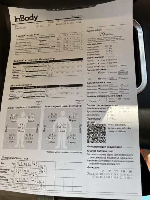 Сделала состав тела в зале. Стало лучше. Мышцы выросли, жир начал покидать это бренное тело. Вес идет вниз. 62 кг😎 идеальный вес - это еще -3.3 кг жира