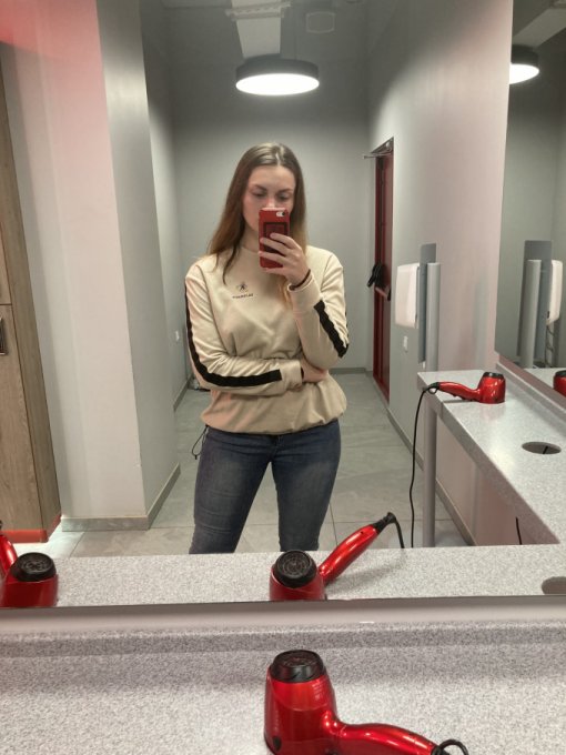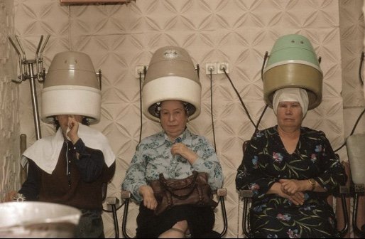 Последний раз, когда я была в бассейне, стояли ещё стационарные сушилки для волос. Вы, наверное, не застали. Такие в советское время в парикмахерских повсеместно были. А сейчас всё по-современному. Красные фены.