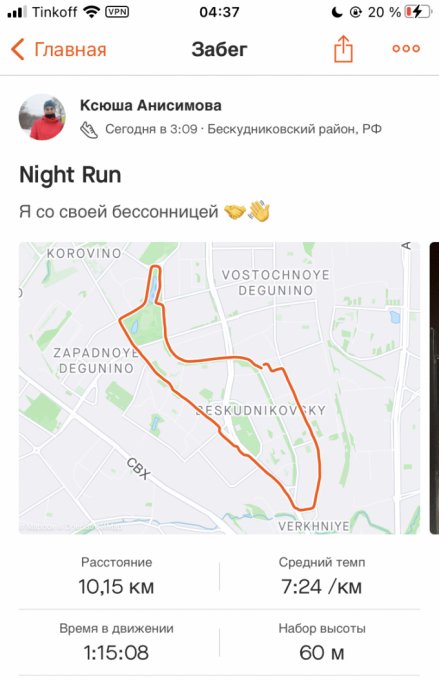 Не смогла заснуть. Думаю питание тоже на это влияет. И день отдыха. А то шибко привыкла к ночным тренировкам…Как говорится, если не ложиться спать, то и бегать вставать не надо…