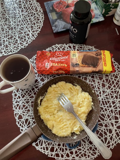 ~9:00 картофельное пюре с яйцом. 4 юбилейных в глазури