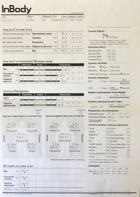 На прошлой неделе сделал проверку состава тела на аппарате InBody.