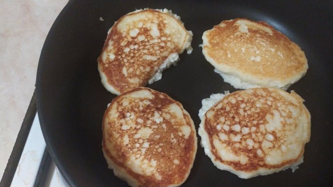 между сырниками и оладиками. Буду есть с малиновым низкокалорийным