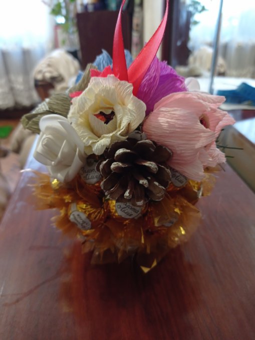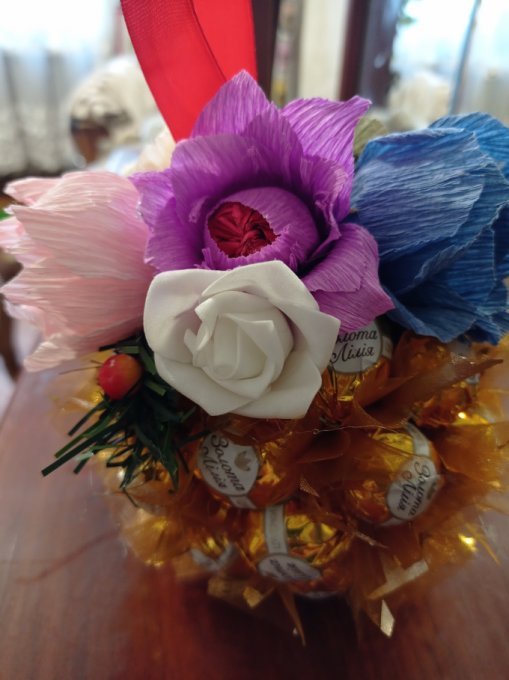 На фоточке подарок от моей подруги - конфетки в цветах. Аллочка