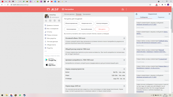 Б/Ж/У, кроме "Моя диета". Здесь Б/Ж/У считаем вручную, т.е. задаем