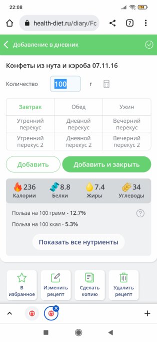 | Кол-во | Калории | Белки | Жиры | Углеводы | |