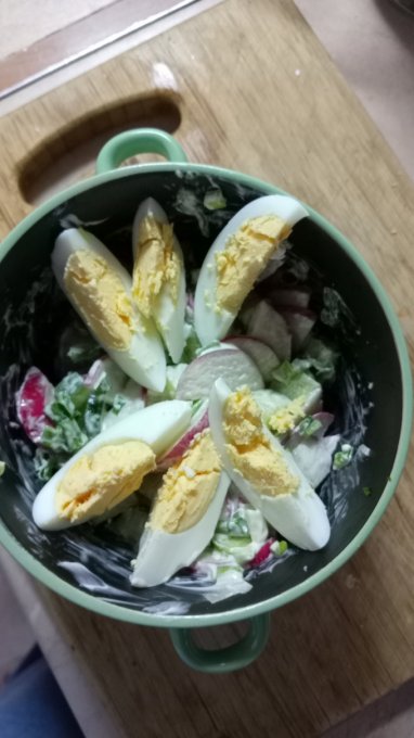 зелёный и яйца. Лук, конечно, выращивали на подоконнике. Позже