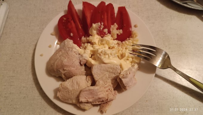 Постаралась хотя бы не превышать калорийность. Целый день провела в домохозяйственных делах. Хотела сходить в бассейн, но муж уговорил сходить в магазин с ним. Он покупал в деревню сапоги. А если он собрался, то лучше сходить с ним. А то ведь знаете как у нас мужчины любят ходить по магазинам. :хихикаю:  И в  итоге не удалось сходить. Зато заодно и себе кое что приобрела. :oops: