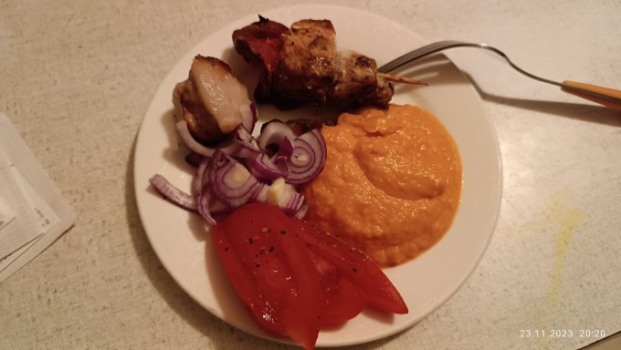 | Свинина, средняя часть филе на кости, постное мясо, запечённая |