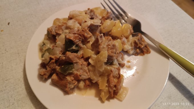 | Свинина, рёбра средней части с мясом, постное мясо, жаренные на сковороде |