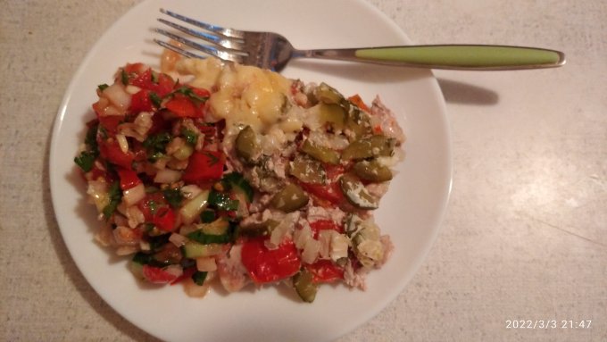 | Индейка запеченная с помидорами и сыром |