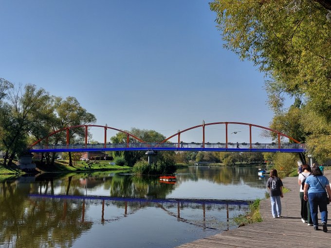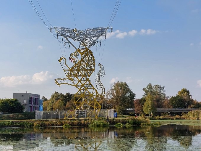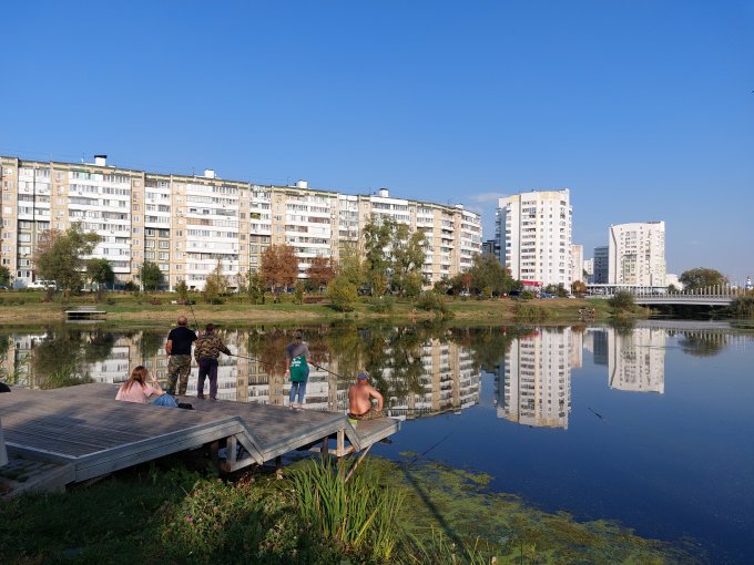 День сегодня чудесный, много гуляла, сходила в бассейн. Завтра ожидается похолодание. 1 октября - у нас люди загорали на солнце, я такого тепла не помню. На фото рыбаки и опора ЛЭП в виде льва.