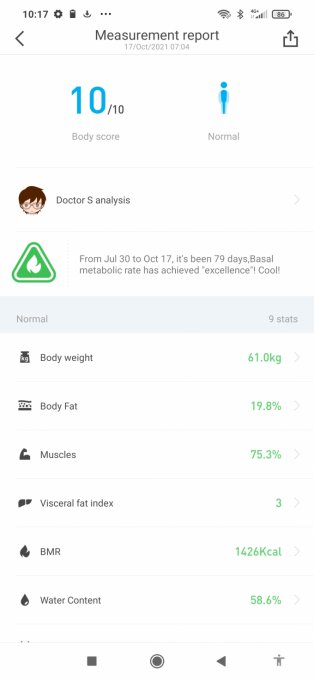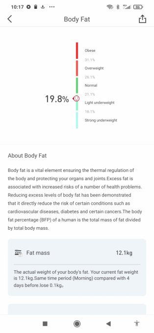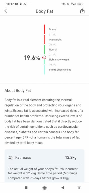 статистику и видим, что процент жира изменился с 19.6% на 19.8%,