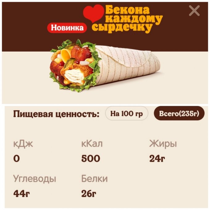 | Кол-во | Калории | Белки | Жиры | Углеводы | |