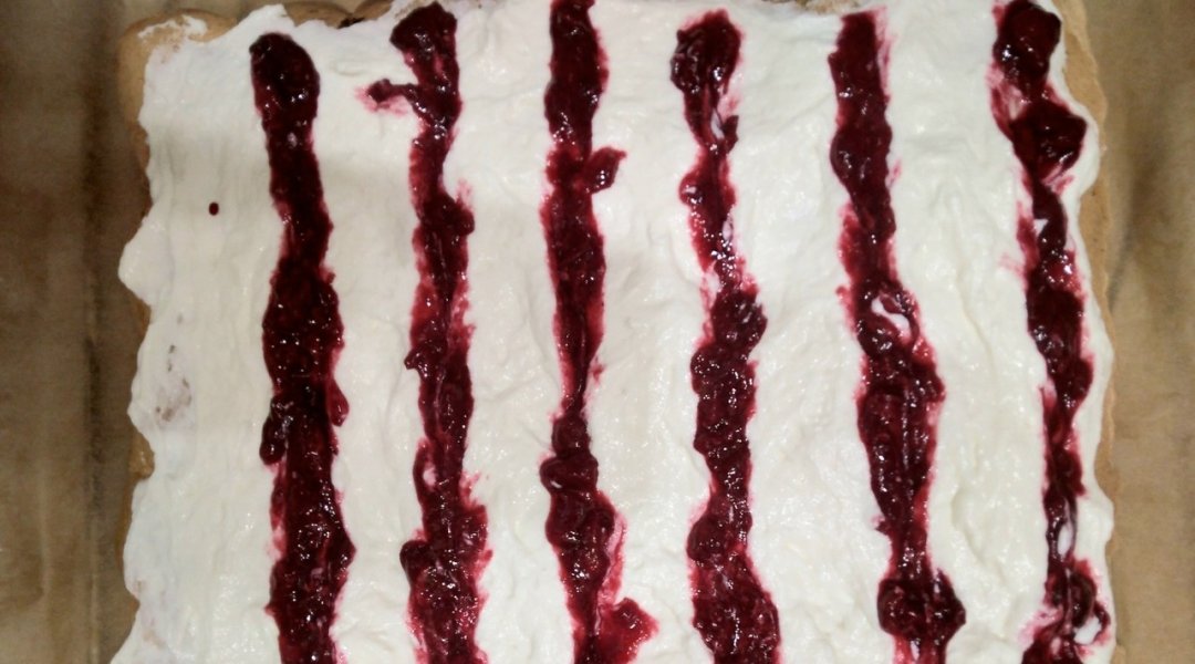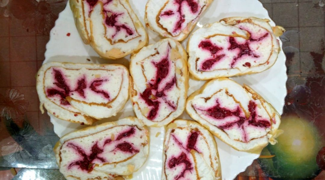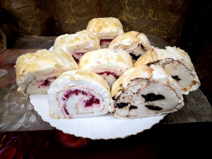 | Меренговый рулет без сахара и эритрита с творожно-вишнёвой начинкой |