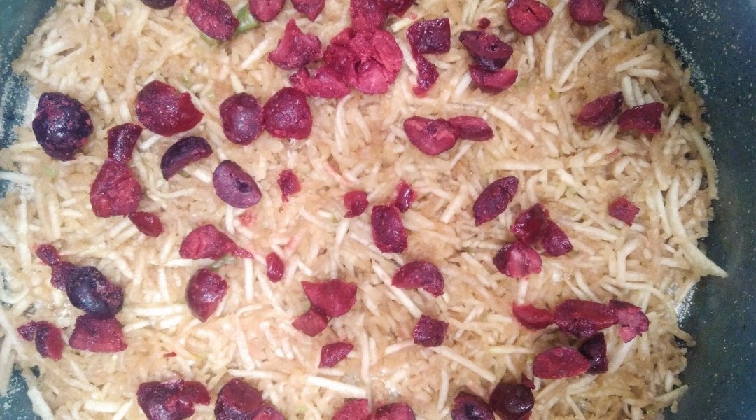 На один из яблочных слоев выложить ягоды. Вишня придаст приятную кислинку.