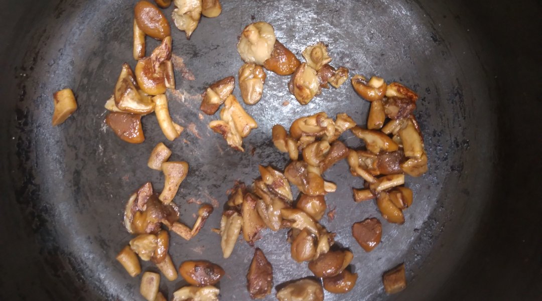 Опята, если свежие, предварительно отварить, если замороженные, разморозить и крупные нарезать на части