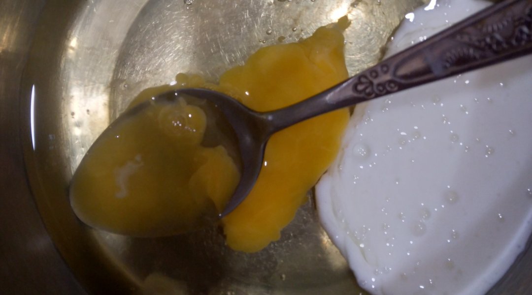 Отделить белки от желтков, в миске соединить 4 белка, 1 желток и кефир, посолить.