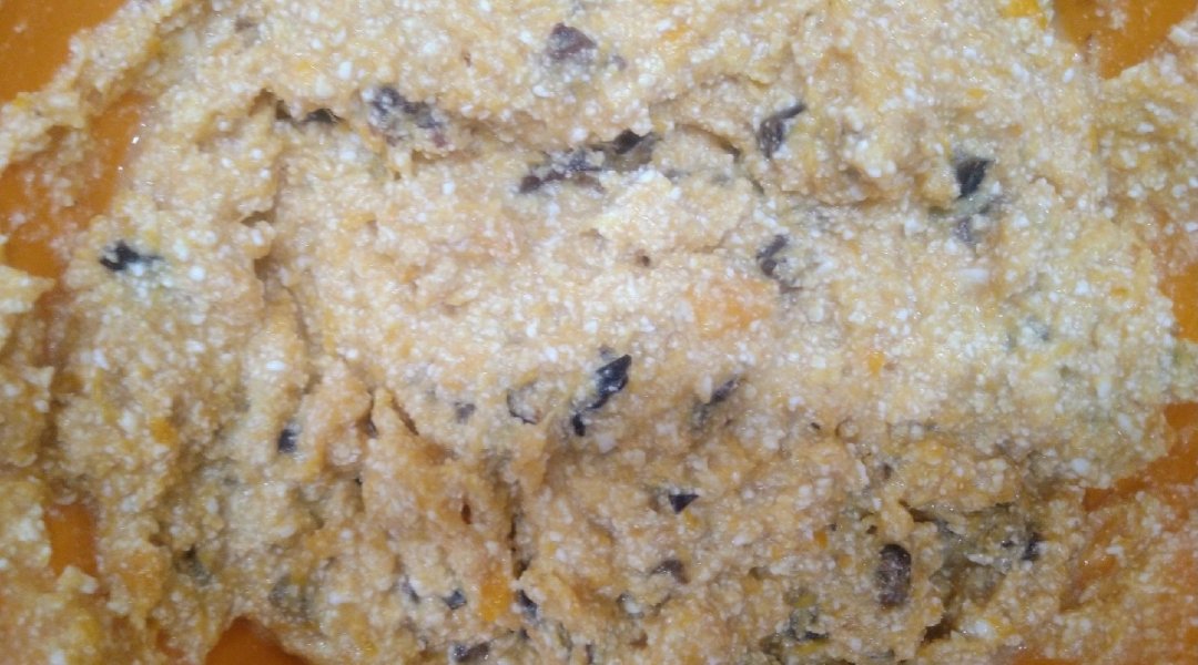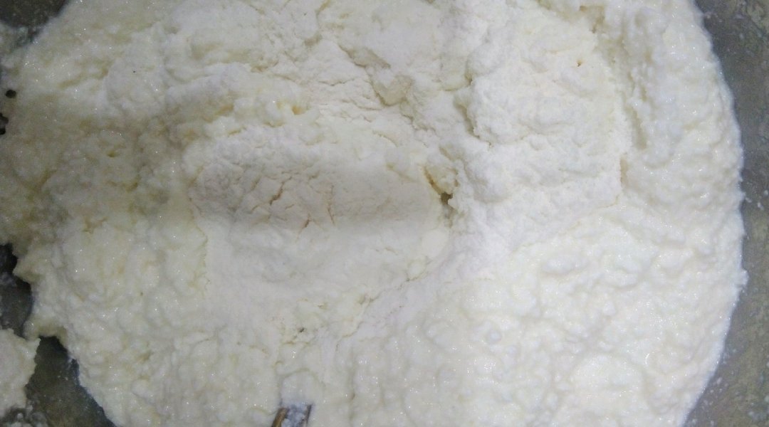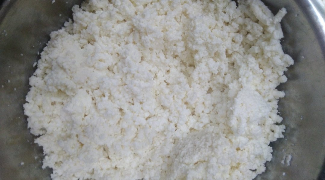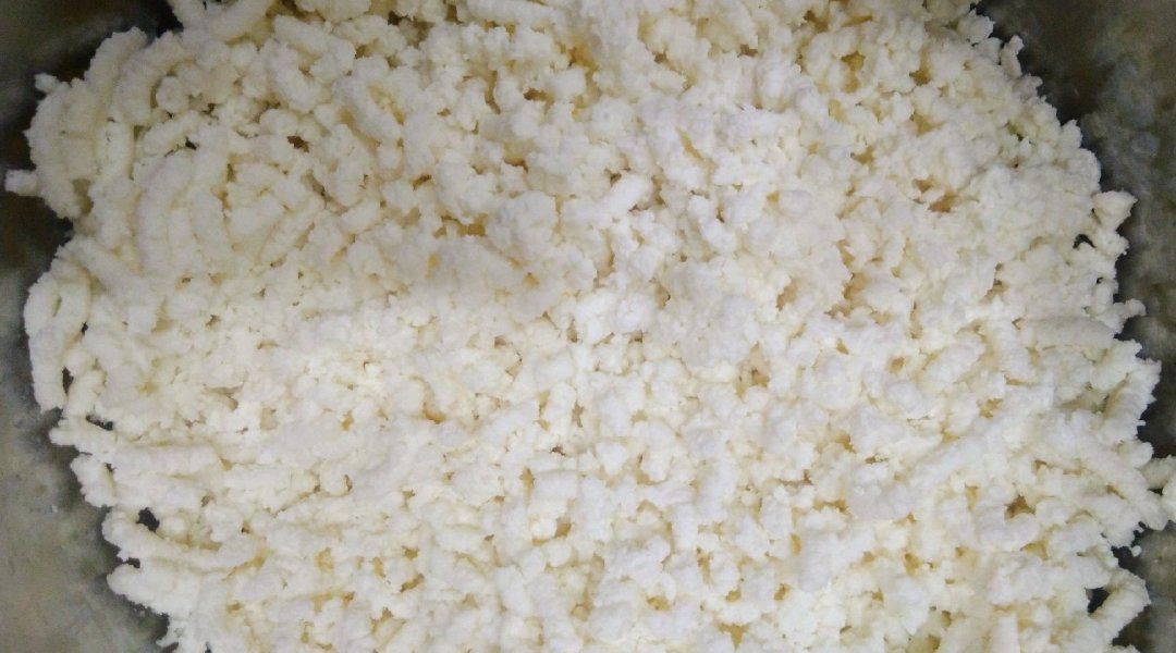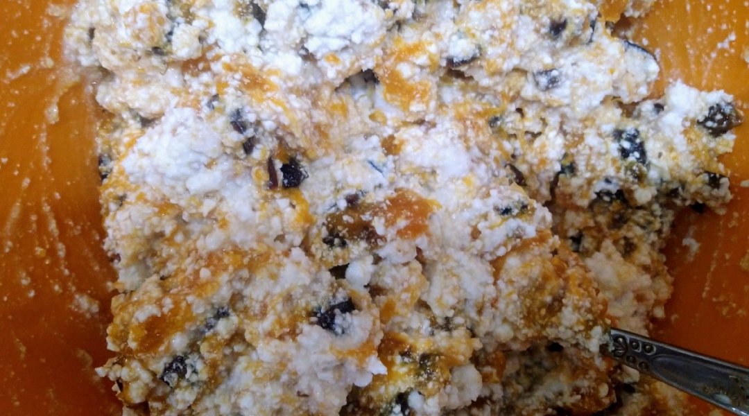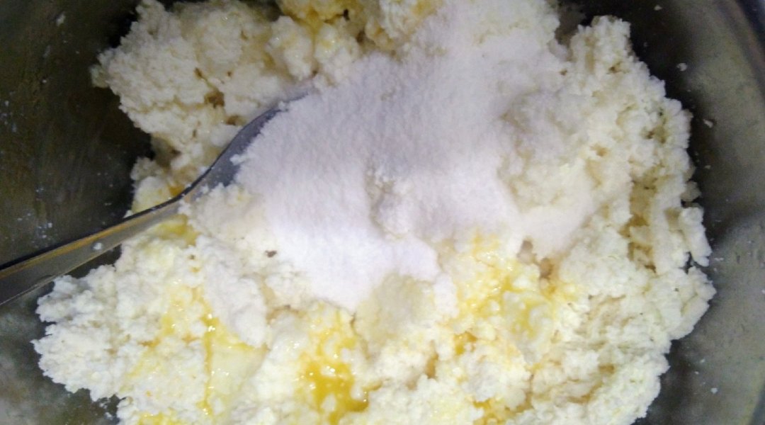 Измельчить творог, но не до кремообразной массы. Я это сделала через мясорубку.