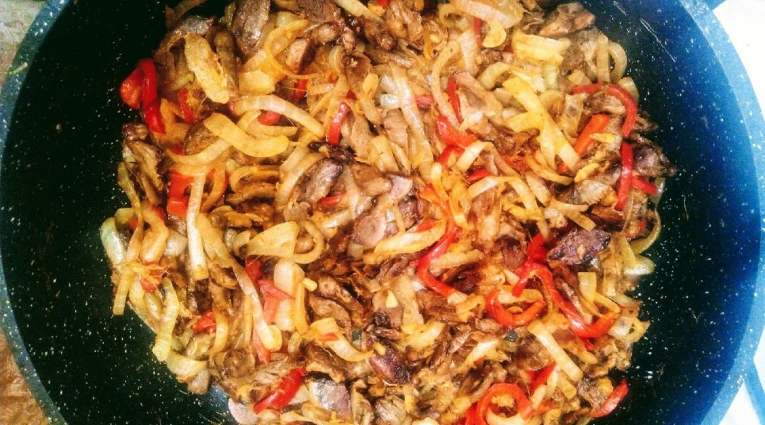 Промаринованные желудки вместе с маринадом поместить на сковородку