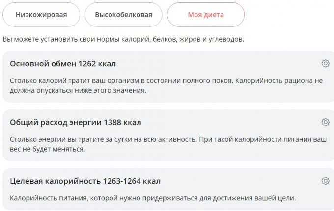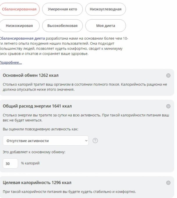 рамки калорий, правильно ли выбран уровень активности и т.д. И еще