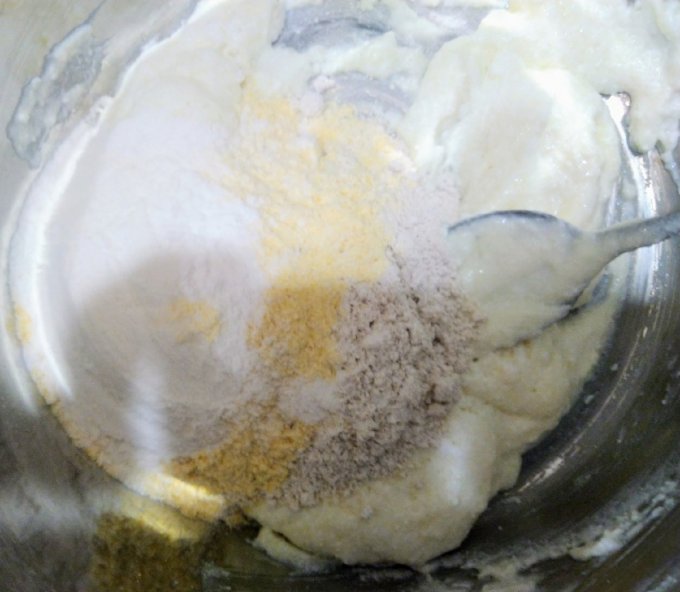 За основу творог и яйцо везде. А мука разная: рисово-кукурузная,