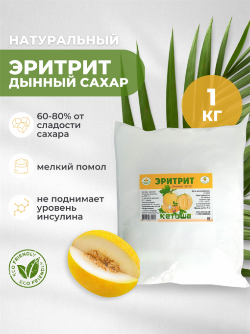 | Сахарозаменитель: эритрит + стевия | 65 г |