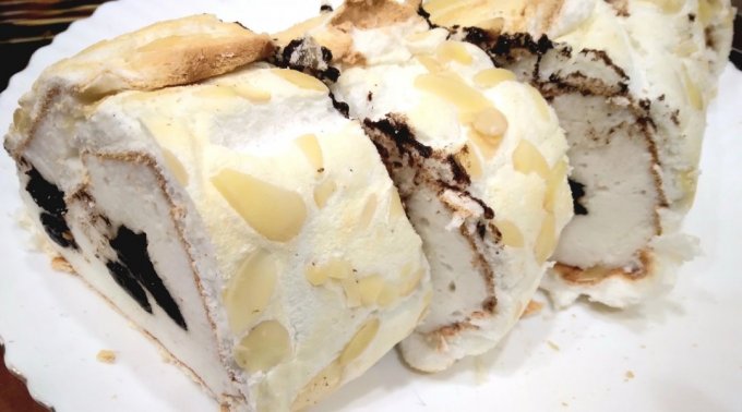 | Меренговый рулет на эритрите с белково-шоколадным кремом и орехами |