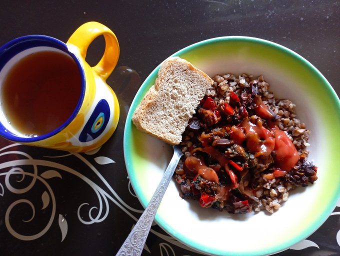 | Картошка с древесным грибом жареная |