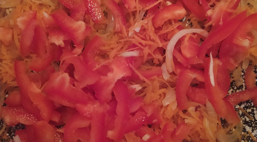крышкой до полу готовности. Отправляем к ним и перец, ещё 5-7 минут