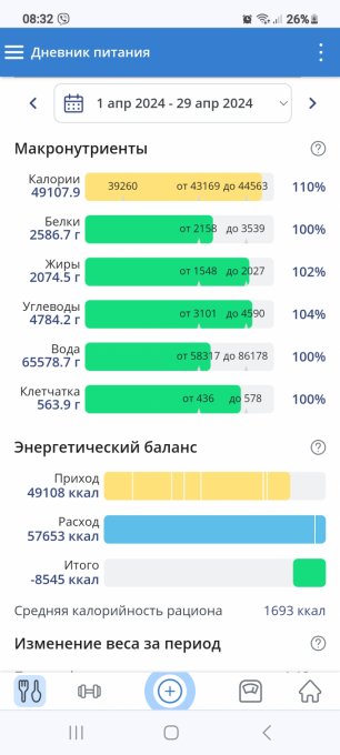 Чтобы увидеть отчеты по питанию и график веса, необходимо войти.