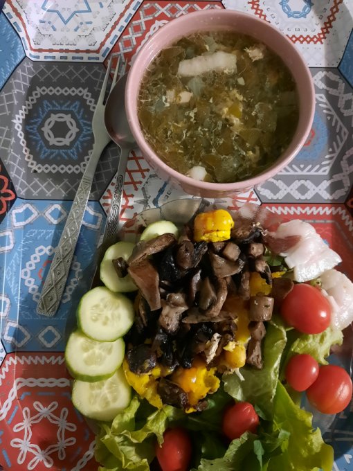 Добрый вечер.Сегодня третий день кето.Толи от того что пища жирная,толи от того что стали вырабатываться кетоны.Незнаю.Но кушать я реально не хочу.Прилагаю фото своего ужина.Вот смотрю и думаю как это сьесть.Уменьшать уже нельзя.Итак калорий мало за день если учесть что я 6 км.быстрым шагом сегодня отмотала.Интенсивно уходит вода.За два полноценных дня на кето ушло 1.5кг.Но я пока это не вписываю в дневник так как уходит не жир.А, еще.Добавило сегодня 5 грамм топленого масла в 150 грамм кофе.Очень вкусно.