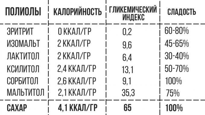 Полиолы это сахарные спирты, которые по химической формуле похожи на углеводы, но имеют значительно меньшую калорийность в сравнении с обычными углеводами (1) Гликемический индекс данных нутриентов также значительно ниже чем у сахара, поэтому частичная замена простых углеводов в составе продуктов на полиолы поможет снизить гликемическую нагрузку (что может быть важно для диабетиков) (2) При этом все полиолы умеренно сладкие и не имеют послевкусия, поэтому могут заменить сахар в продуктах питания без снижения вкусовых качеств (3)