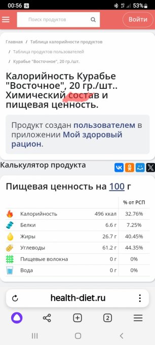 | Кол-во | Калории | Белки | Жиры | Углеводы | |