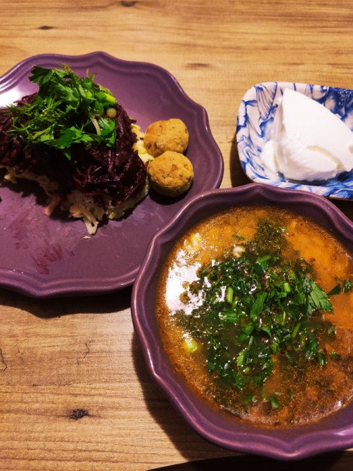 На фото салат в обед начала есть до того как сфотографировала, люблю свеклу 🤦 Но эту скумбрию видеть не могу уже как же она мне надоела, и паштет приготовила и под свеклу ее спратала все равно вкус его сильно яркий 🤦🤦🤦.