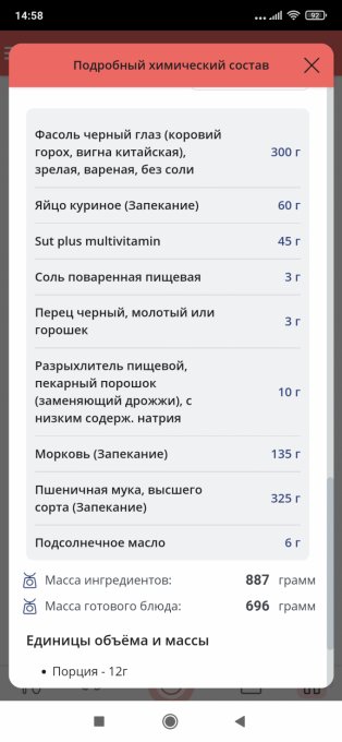 | Кол-во | Калории | Белки | Жиры | Углеводы | |
