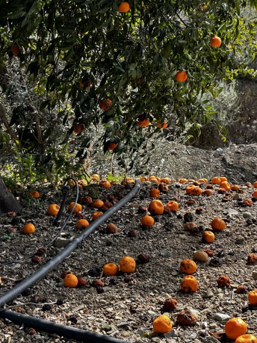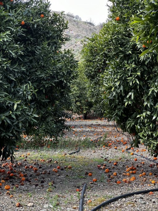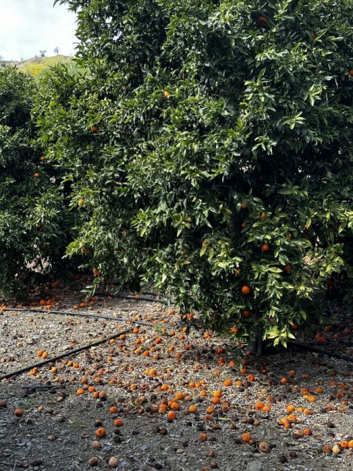 Проезжали несколько мандариновых плантаций. В одну попросила зайти. Хотелось снять мандарины, которые уже почти совсем осыпались. Выглядит это так: