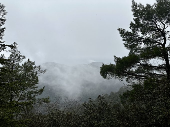 Чуть выше над монастырем еще какая-то башня и памятник архиепископу. Поехали туда. Попали сначала в тучу, все в тумане, немного страшно но виды просто потрясающие.