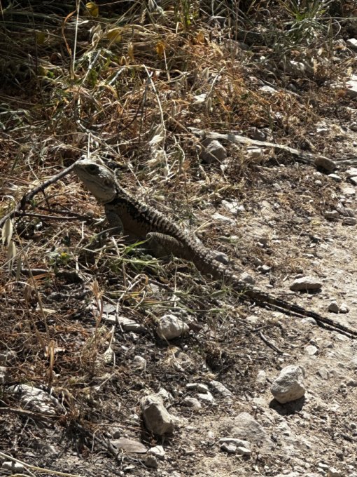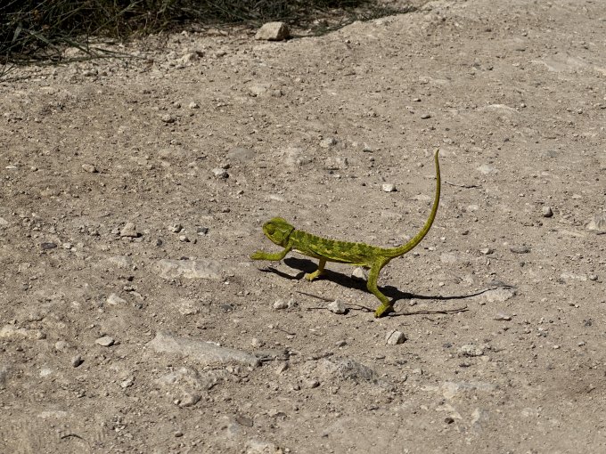 А еще мы по дороге встретили хамелеончика. Он так смешно переходил дорогу Удивительно, что он умудрился дорасти до такого размера (величиной с ладонь), потому что с его скоростью переходить дороги, где ездят машины…