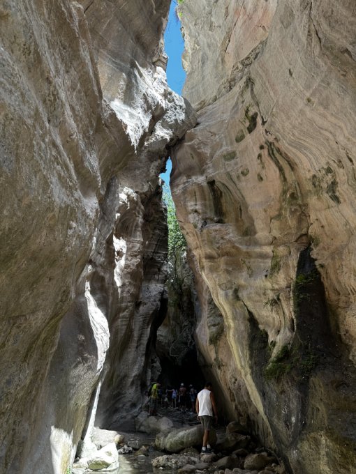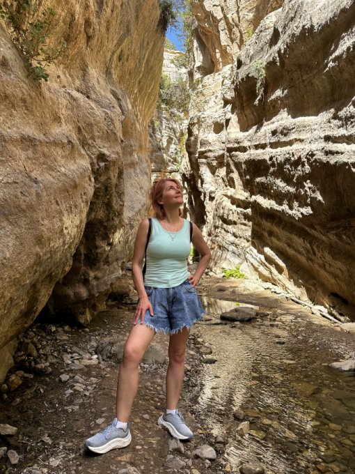 Ходили еще в ущелье. Я умудрилась обгореть. Намазана себя кремом везде: плечи, спина, руки, лицо. Но забыла про область вокруг шея-грудь. Вечером обнаружила, что это место красное. Теперь уже коричневое, правда