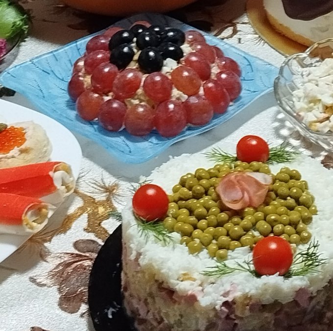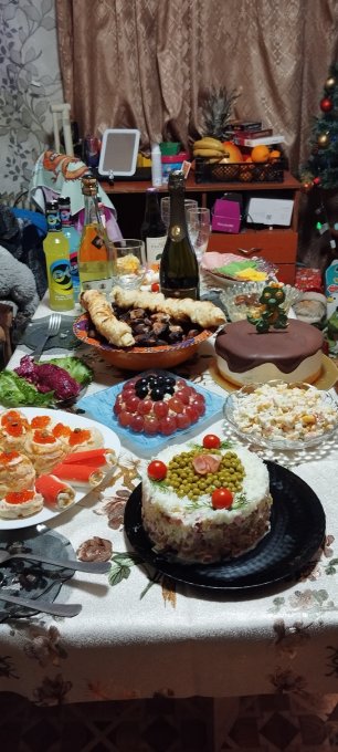 Новый год справляли у коллеги и его жены. Наготовили очень много.